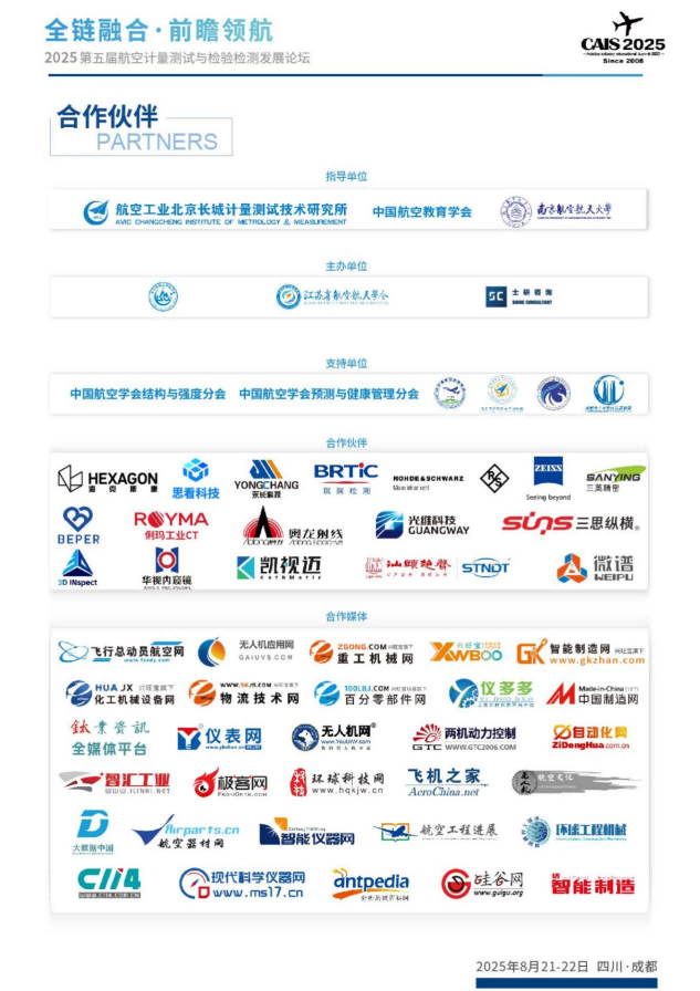 “2025第五届航空计量测试及检验检测发展论坛”在8月21至22日在成都举办,会议邀请400多位来自全球飞机整机制造商、零部件供应商、原材料、数字解决方案供应商、维修公司、检测机构系统及设备供应商等相关企业、科研院所的高管、专家、学者围绕“航空计量检测的技术跃迁与产业赋能”、“前瞻性计量检测技术引领国际航空未来”、“全寿命周期计量检测技术创新与应用”三个版块进行探讨。本次峰会覆盖航空工业的前沿动态和热点话题,从理论应用到技术研发,从本土创新到国际合作,各位专家力图助力航空工业的全球化合作与发展。