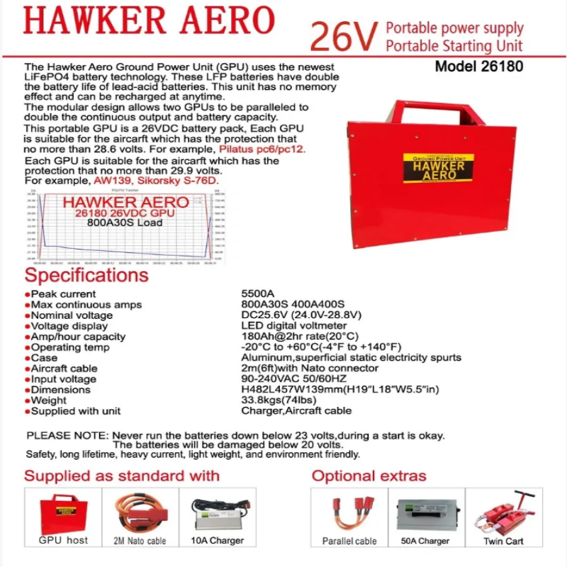 HAWKER飞机地面电源26180航空专用启动霍克锂电池