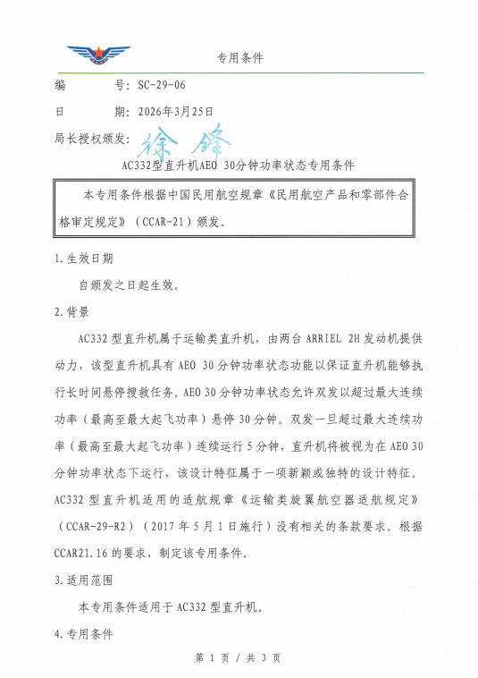 AC332型直升机AEO 30分钟功率状态专用条件.PDF