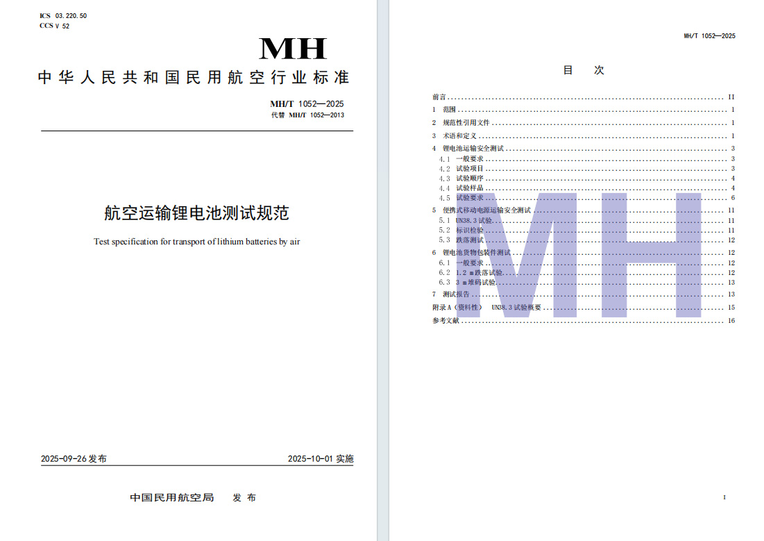 本文件规定了航空运输锂电池、便携式移动电源、锂电池货物包装件的运输安全测试以及测试报告等要求。本文件适用于锂电池生产厂家、检验检测机构等单位开展锂电池、便携式移动电源和锂电池货物包装件航空运输所需的测试。本文件不适用于梯次利用、废弃回收、有质量缺陷、经特殊批准或豁免运输的锂电池测试。