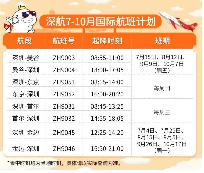 深航7-10月国际航班计划