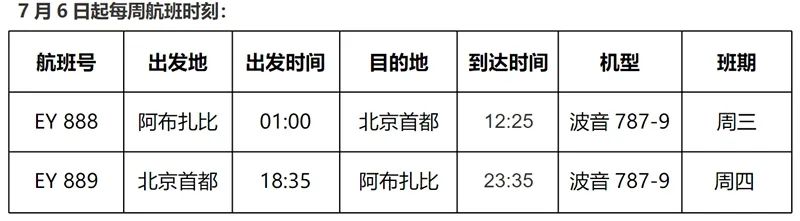 阿提哈德航空复航北京